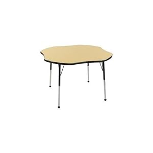 Product Description : ECR adjustable leg activity tables feature 1.125" thick tabletops with laminate on both the top and bottom. Color-coordinated powder-coated upper legs, edgebanding, and matching polypropylene ball glides in the most popular classroom colors. Will not fade or discolor. Safe, non-toxic, stain-resistant and easy to clean. Tabletop Details:. Laminate table tops are 1.125" thick and are laminated on both sides. Color-banding grips into the tabletop edges. Color banding is made from PET and contains no phthalates. The table substructure is made from medium-density particleboard (47 lb/ft3) that is at least 90% recycled (minimum 4% post-consumer, balance pre-consumer). EPP certified, CARB compliant and may contribute to US Green Building Council's LEED Credits. 18 Gauge galvanized steel stability bars, with poly caps, installed on underside of all 66" - 72" length tables. Superior shipping materials meet or exceed ISTA regulations. Shape: Clover. Color: Gray. Leg Details:. Powder-paint coated upper leg. Chrome-plated adjustable lower leg insert. Legs are adjustable in 1" increments. Threaded adjustment holes in chrome lower leg keeps legs securely in place. Color coordinated polypropylene ball glides and nylon swivel glides available. Easy mount leg installation with pre-installed brackets and pre- drilled screw holes for easy alignment. Toddler Leg size (15" - 23").