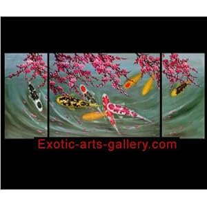 Product Description : : Hand Painted by Feng Shui Master, oil painting on canvas. FRAMED/STRETCHED, ready to hang. Custom made reproduction, please allow 3 weeks for painting and shipping. The pictures shown are of the original painting.Modern abstract art painting HAND PAINTED OIL ON CANVAS. Framed/stretched ready to hang. Chinese Koi Fish Painting-Japanese Koi Paintin. In Asian folk art the koi fish paintings bring luck and wealth and represent harmony and balance. In Japanese koi art and Chinese fish paintings, the koi fish is a symbol for strength and individualism. Koi fish, are transformed through their efforts and perseverance, able to climb waterfalls or become dragons. In Chinese culture the Koi oil painting represents perseverance in the face of adversity and strength of character and purpose.All our koi oil paintings are hand painted by the original artist. Our koi fish paintings are original Asian artworks.