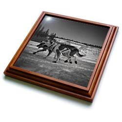 Product Description : : Size: 8x8 Trivet with 6x6 ceramic tileYukon Quest Sled Dogs on the Takhini River Black and White Trivet is measuring 8w x 8h x .75d. Made of solid wood with padding on back that protects your furniture. Framed trivet comes with 6w x 6h ceramic gloss tile attached to the wood frame.
